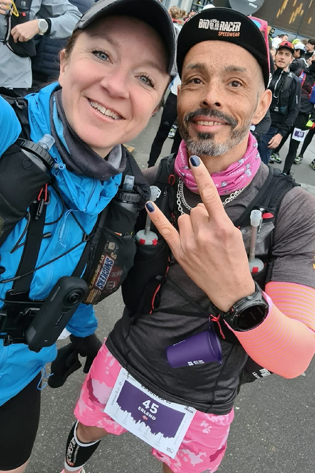 Tone og Erlend skriver: Vi dro ned til det blide Sørlandet for å løpe det sagnomsuste Kristiansand Ultra og så for oss gode temperaturer og tørre og fine stier. Men realiteten ble en litt annen. 2 grader på startstreken. Regnet kom ganske raskt. Søkkvåte gjørmete stier med et lag nysnø på i høyden. Altså, det kunne vel ikke vært særlig værre forhold. Så det ble en krevende, våt og kald tur hvor vi virkelig fikk trent på det mentale.